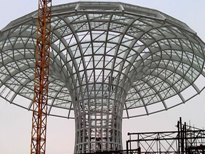 二、球形网架结构因其结构新颖,受力合理,自重轻、用钢量低等优点。如大型体育场馆球形宣城螺栓球网架、公共场馆球形网架、电厂宣城螺栓球网架、水泥工业球形网架、仓储物流球形网架、宣城干煤棚工业球形网架、宣城收费站宣城加油站球形网架、展览中心、影剧院、商场、航站楼、候车厅、工厂宣城车间、仓库、电视塔等球形螺栓球节点网架。国内球形网架结构主要分为:宣城焊接球节点网架及螺栓球节点网架两种。螺栓球节点网架其构件工厂内加工量较大,现场安装便捷,适用于现场工期紧,宣城施工条件、用电量受制约,网架形状复杂、宣城杆件定位困难的异形结构。螺栓球节点球形网架系统基本由宣城杆件、螺栓球、支撑支座等组成。按照节点形式可分为交叉宣城桁架体系、四角锥体系、三角锥体系等。支撑方式多为固定支座支撑。对于大面积、大跨度及有特殊受力或伸缩要求的网架结构可采用橡胶支座、滑移支座、球铰支座等支撑形式,以满足结构自身的受力稳定、均衡,便于内力释放等设计要求。